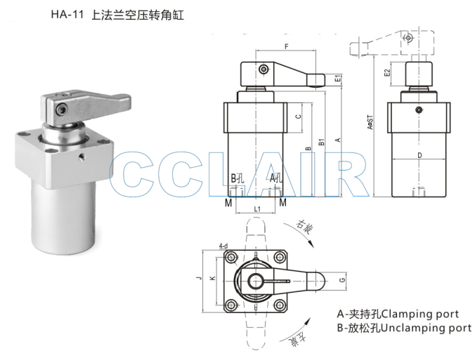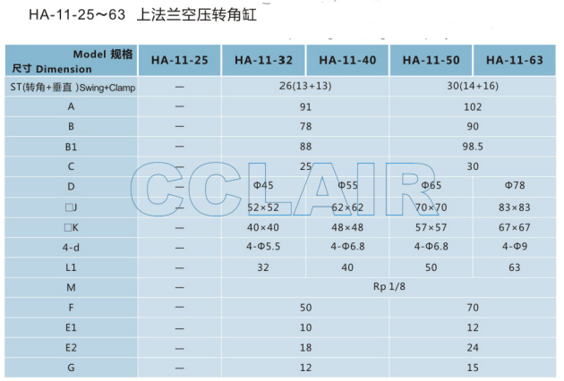 HA-11-25,HA-11-32,HA-11-40,HA-11-50,HA-11-63,上法蘭空壓轉(zhuǎn)角缸,無錫昌林
