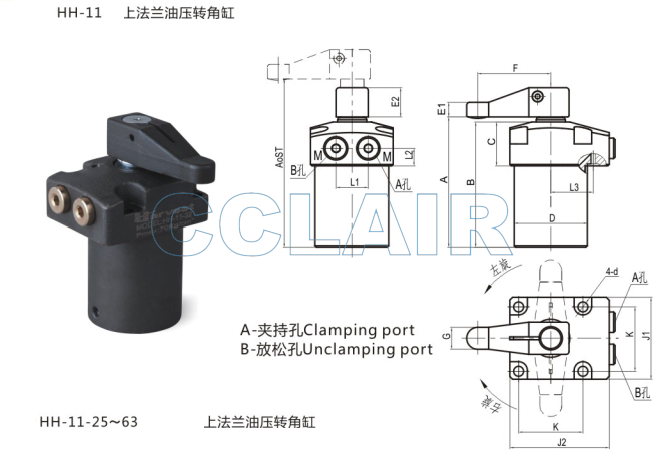 HH-11-25,HH-11-32,HH-11-40,HH-11-50,HH-11-63,上法蘭油壓轉(zhuǎn)角缸,無(wú)錫昌林
