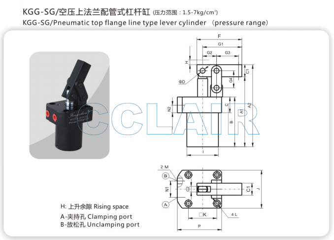 KGG-SG25,KGG-SG32,KGG-SG40,KGG-SG50,KGG-SG63,空壓上法蘭配管式杠桿缸,無錫昌林