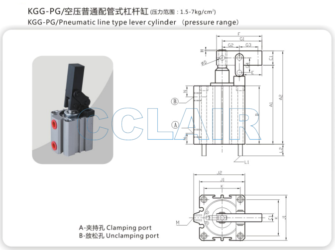 KGG-PG25,KGG-PG32,KGG-PG40,KGG-PG50,KGG-PG63,空壓普通管式杠桿缸