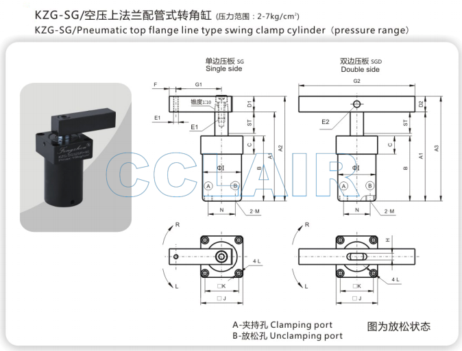 KZG-SG32,KZG-SG40,KZG-SG50,KZG-SG63,空壓上法蘭配管式轉(zhuǎn)角缸