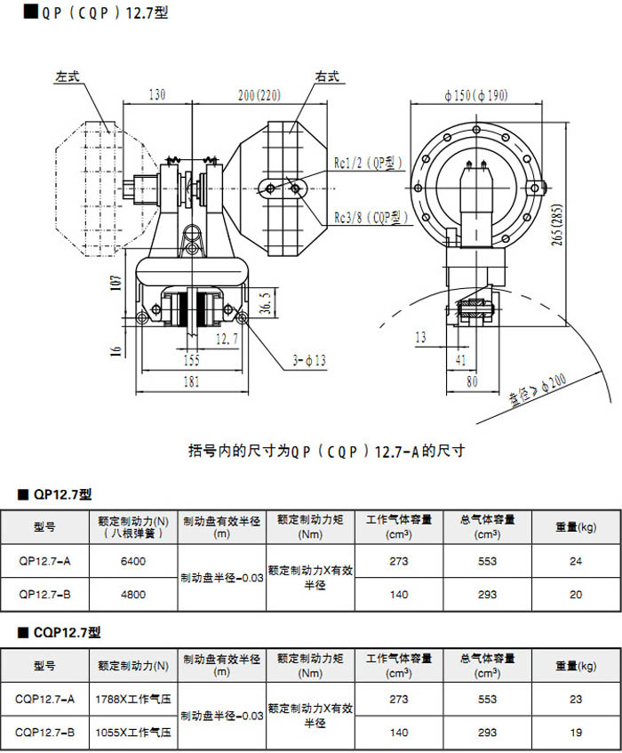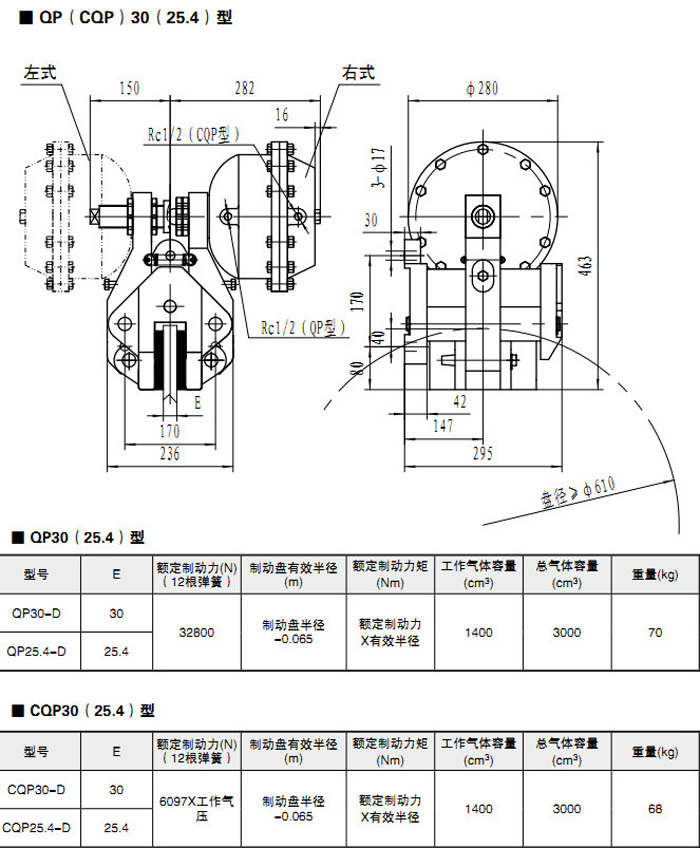 CQPL12.7A-B,QPL12.7-B,CQPL12.7-B,CPQ30-D,CPQ25.4-D,CQP20-D,氣動鉗盤式制動器