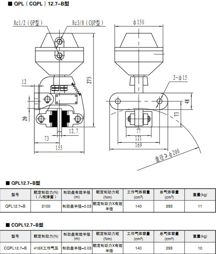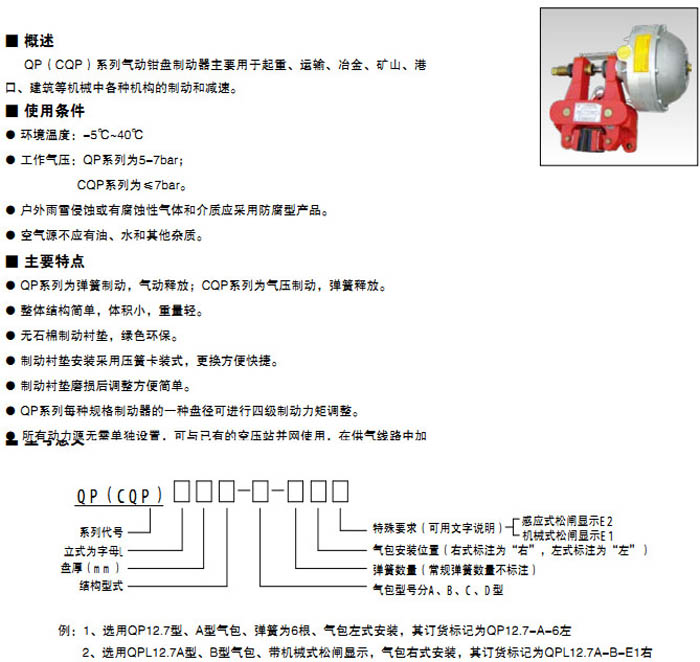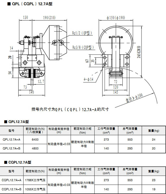 CQP12.7-A,CQP12.7-B,QPL12.7A-A,QPL12.7A-B,CQPL12.7A-A,氣動鉗盤式制動器