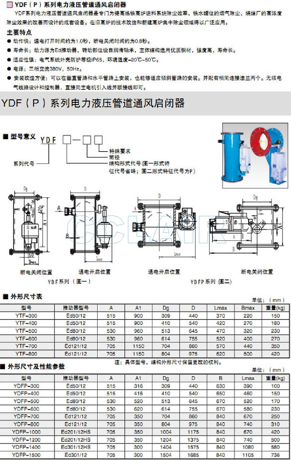 YDFP-800,YDFP-1000,YDFP-1200,YDFP-1400,YDFP-1500,電力液壓管道通風(fēng)啟閉器 |