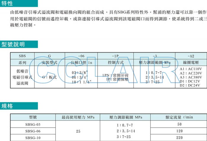 SBSG-03-1PN,SBSG-06-1PN,SBSG-10-1PN,SBSG-03-1P,SBSG-06-1P,低噪音電磁引導(dǎo)式溢流閥