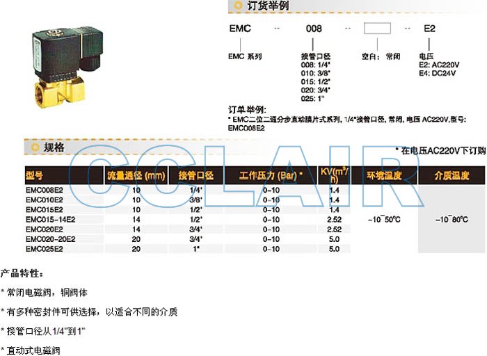 EMC008E2,EMC010E2,EMC015E2,EMC020E2,EMC025E2,EMC008E4,EMC010E4,直動(dòng)式膜片式電磁閥