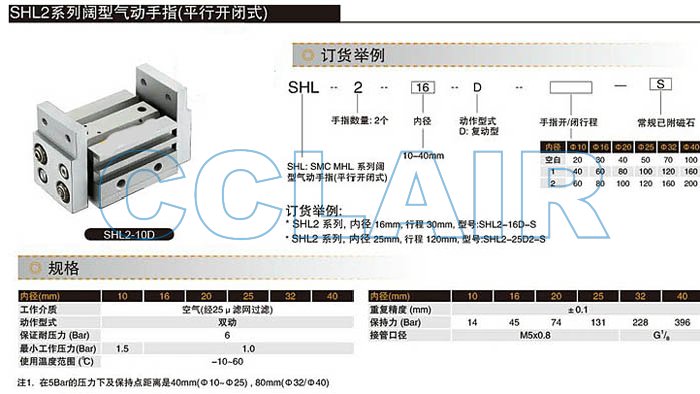 SHL2-10D,SHL2-16D,SHL2-20D,SHL2-25D,SHL2-32D,SHL2-40D,闊型氣動手指氣缸