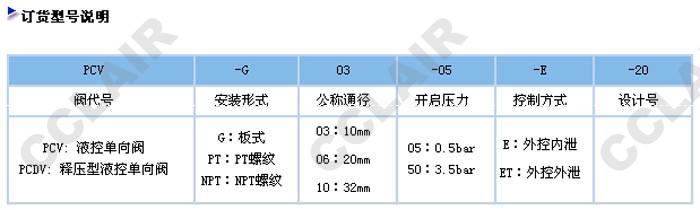 PCV-G03-05-E-20,PCV-G06-50-E-20,PCV-G06-05-ET-20,液控單向閥