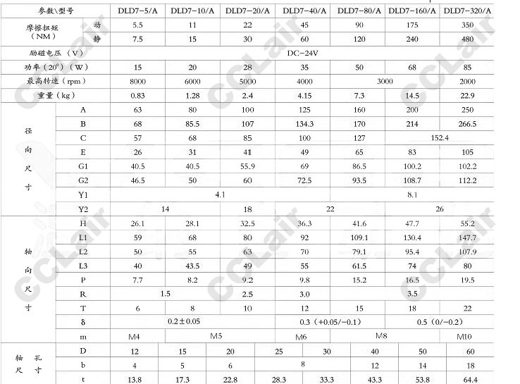 DLD7-5/A,DLD7-10/A,DLD7-20/A,DLD7-40/A,DLD7-80/A,DLD7-160/A,DLD7-320/A,電磁離合器