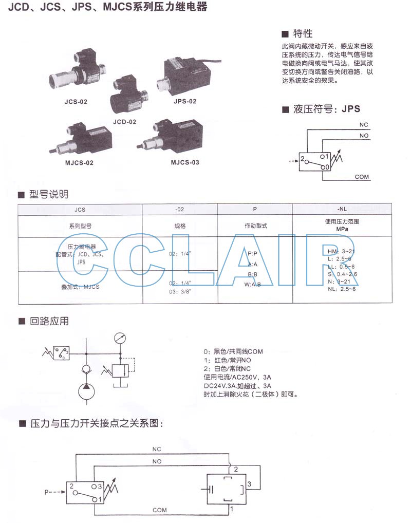 JCD-02,JCS-02,JPS-02,MJCS-02,MJCS-03,壓力繼電器