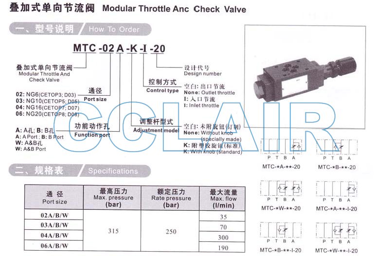 MTC-04A,MTC-04B,MTC-04W,MTC-06A,MTC-06B,MTC-06W,MTC-04A-K-I-20,MTC-04A-K-20,MTC-04A-20,MTC-04A-I-20,疊加式單向節(jié)流閥