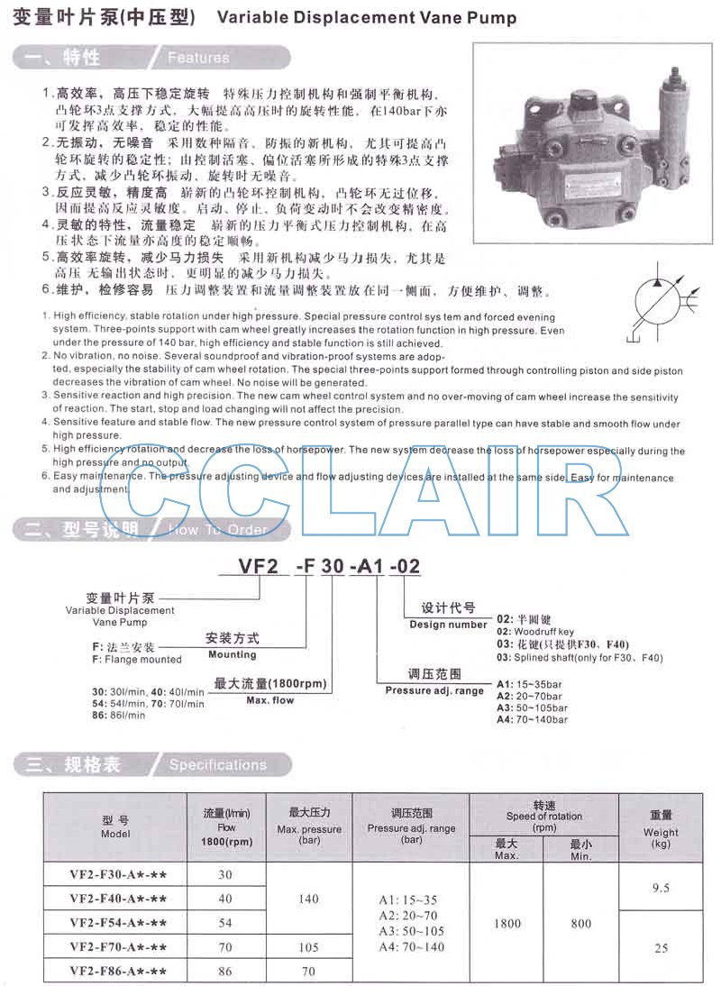 VF2-F30,VF2-F40,VF2-F54,VF2-F70,VF2-F86,VF2-F30-A1-02,VF2-F30-A1-03,中壓變量葉片泵