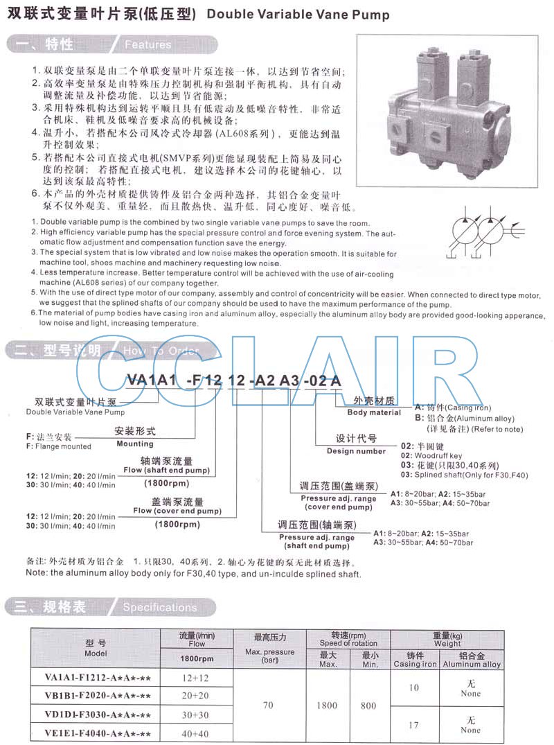 VA1A1-F1212,VB1B1-F2020,VD1D1-F3030,VE1E1-F4040,VA1A1-F1212-A2A3-02A,雙聯(lián)式變量葉片泵