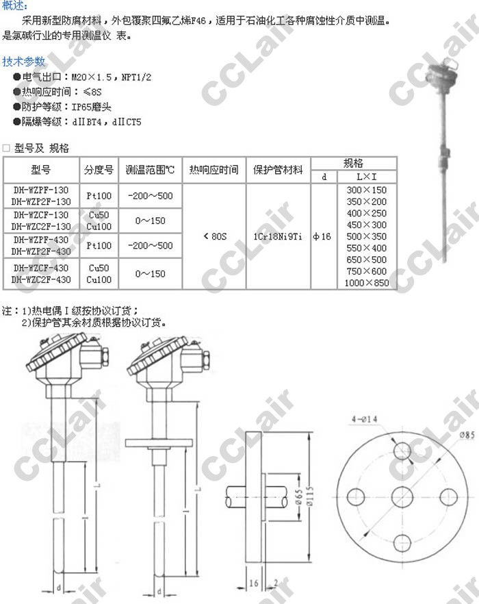 DH-WZPF-130,DH-WZP2F-130M,DH-WZC2F-130,DH-WZPF-430,DH-WZCF-430,防腐熱電阻