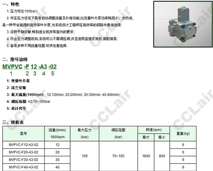 MVPVC-F12-A3-02,MVPVC-F20-A3-02,MVPVC-F30-A3-02,MVPVC-F40-A3-02,變量葉片泵