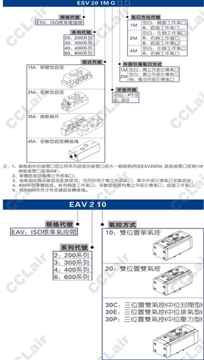 ESV201MG,ESV401MG,ESV303MG,EAV210,EAV320,EAV230C,EAV430P,EAV630P,氣控閥