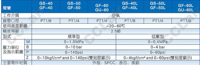GS-40,GS-50,GF-60,GS-40L,GS-50L,GF-60L,GF-40,GF-50,GU-60,GF-40L,GF-50L,GU-60L,壓力表