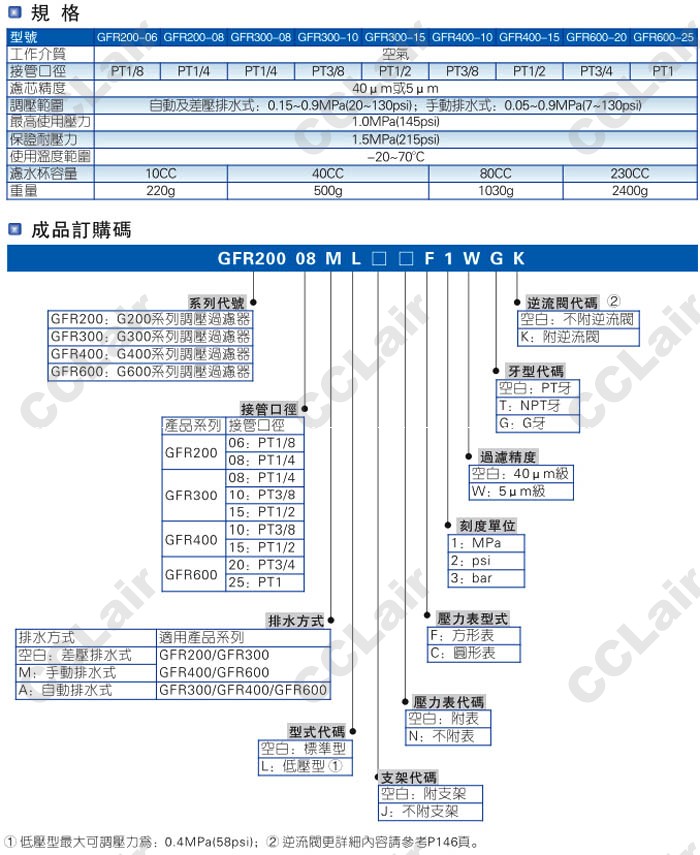 GFR600-20-M-L-J-NC3-W,GFR600-25-M-L-J-NC3-W,GFR600-20-A-L-NC3-W,GFR600-25-A-L-NC3-W,