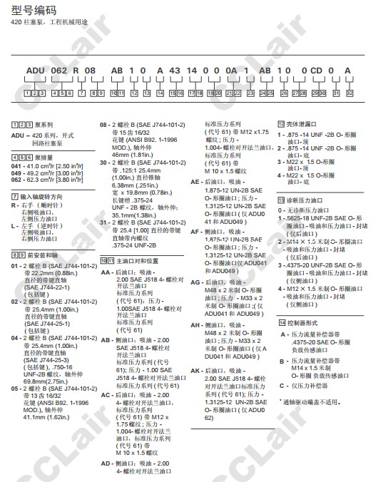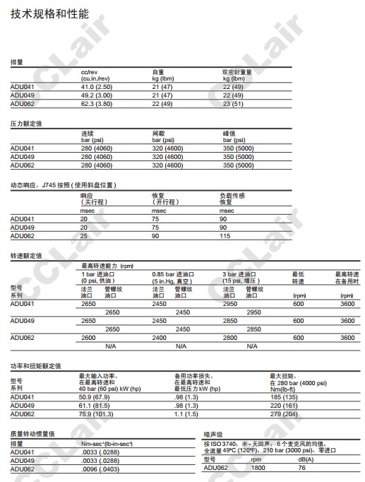 ADU041,ADU049,ADU062,ADU041R01,ADU062R01,ADU062L01,ADU049R01,ADU049R02,威格士-Vickers,柱塞泵