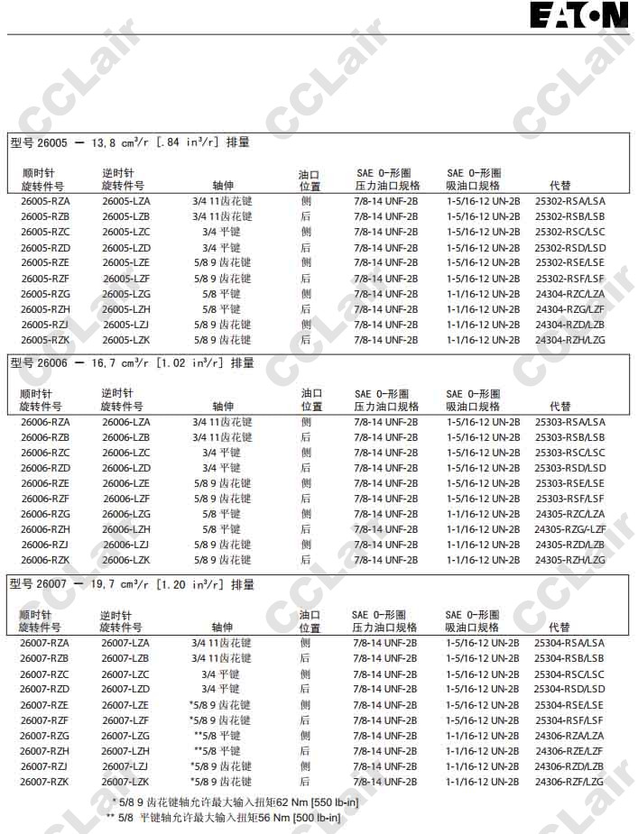 25502-RSA,25502-LSA,25502-RSB,威格士-Vickers25502-LSB,25502-RSC,25502-LSC,