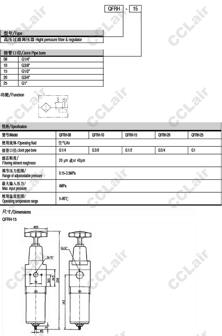 QFRH-08,QFRH-10,QFRH-15,QFRH-20,QFRH-25,高壓過濾調(diào)壓器 |