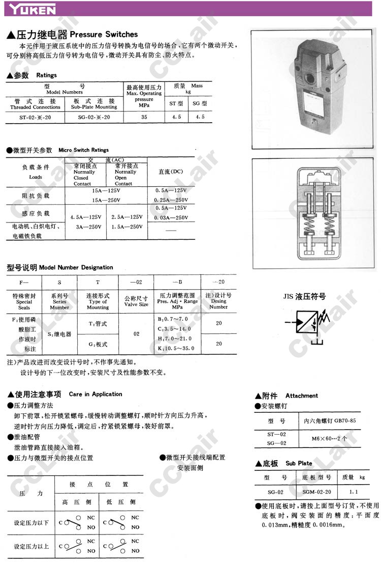 ST-02,SG-02,ST-02-B-20,ST-02-C-20,ST-02-H-20,ST-02-K-20,YUKEN,壓力繼電器