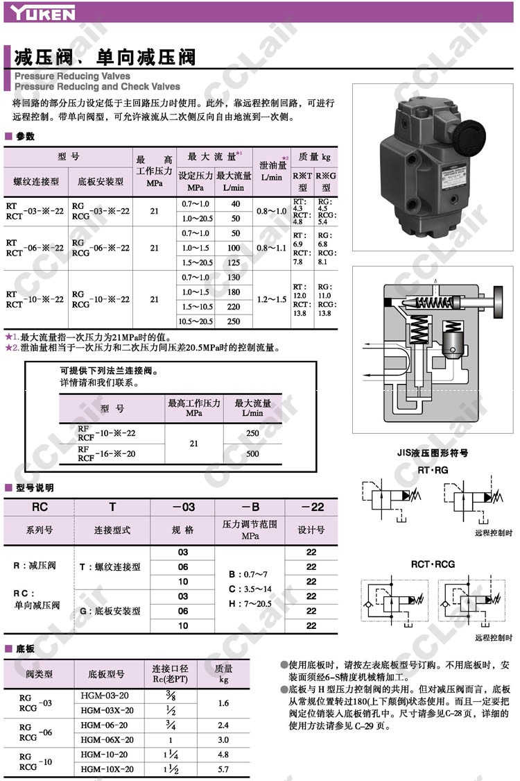 RCT-03,RCT-06,RCT-10,RCG-03,RCG-06,RCG-10,RT-03,RT-06,RT-10,RG-03,RG-06,RG-10,單向減壓閥,YUKEN油研 |