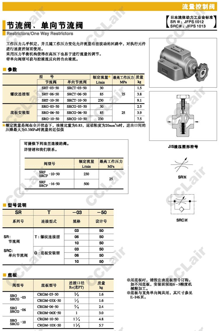 SRCG-03-50,SRCG-06-50,SRCG-10-50,SRG-03-50,SRG-06-50,SRG-10-50,單向節(jié)流閥,YUCIYUKEN榆次油研 |