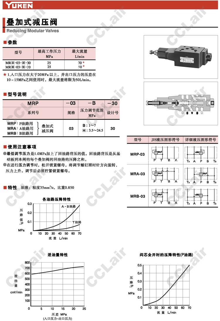 MRP-03-B-30,MRP-03-H-30,MRA-03-B-30,MRA-03-H-30,MRB-03-B-30,MRB-03-H-30,疊加式減壓閥,YUCIYUKEN榆次油研