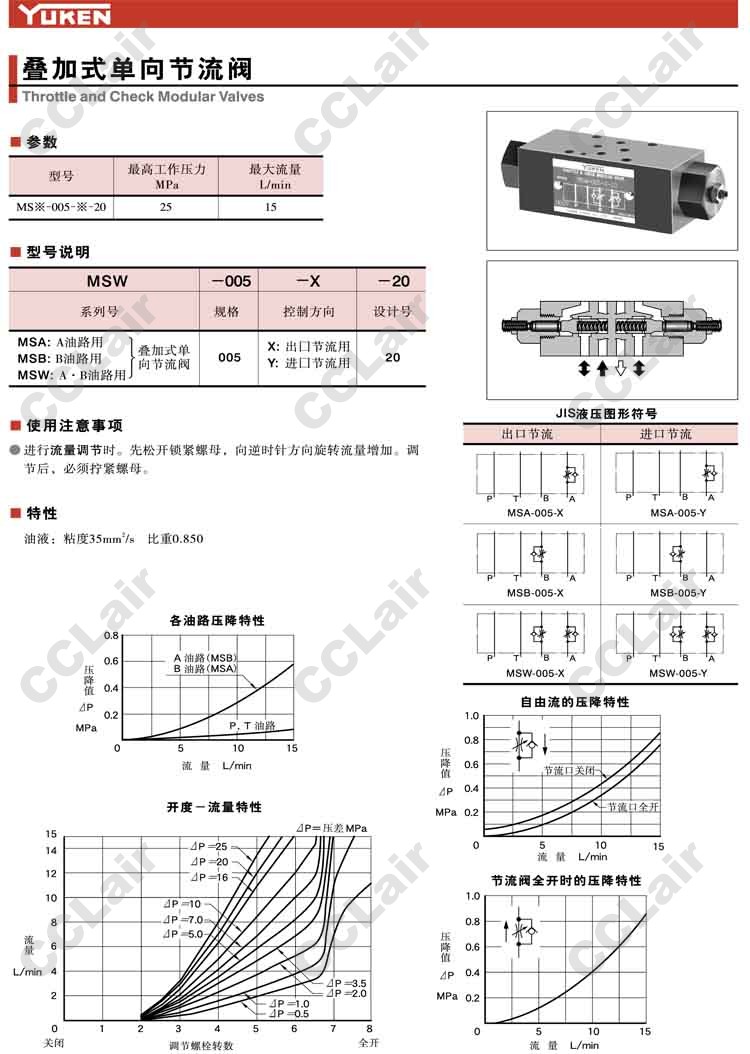 MSW-005-X-20,MSW-005-Y-20,MSA-005-X-20,MSA-005-Y-20,MSB-005-X-20,MSB-005-Y-20,疊加式單向節(jié)流閥,YUCIYUKEN榆次油研 |