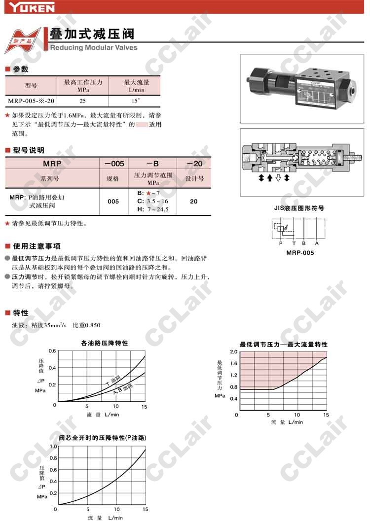MRP-005-B-20,MRP-005-C-20,MRP-005-H-20,疊加式減壓閥,YUCIYUKEN榆次油研 |
