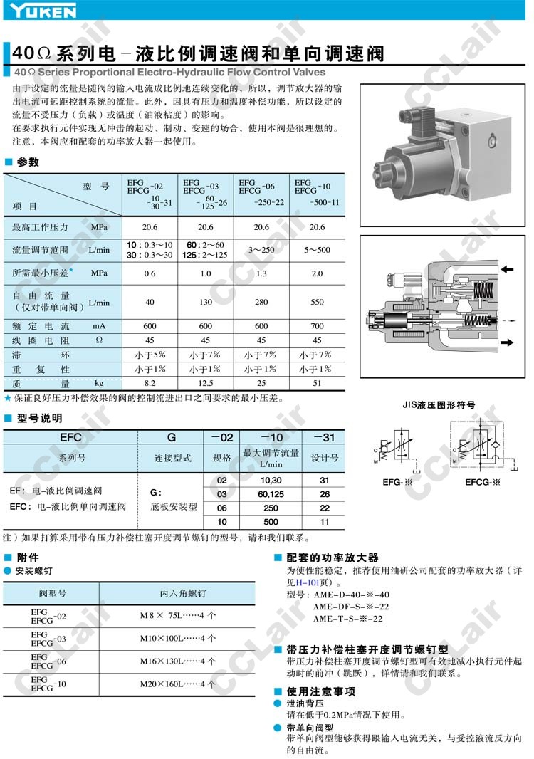 EFCG-02-30-31,EFCG-03-60-26,EFCG-03-125-26,EFCG-06-250-22,EFCG-10-500-11,YUCIYUKEN榆次油研