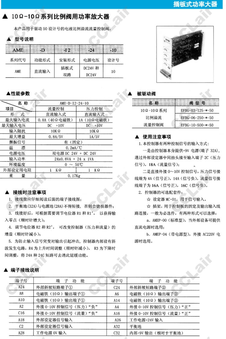 AME-D-12-24-10,比例閥用功率放大器,YUCIYUKEN榆次油研