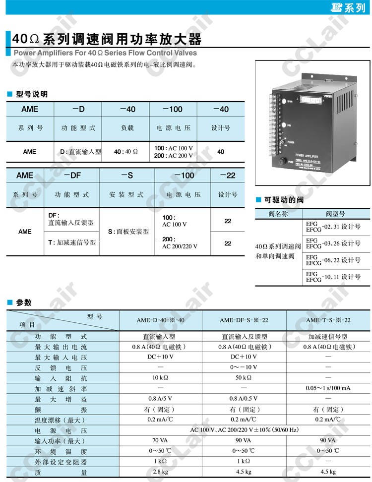 AME-D,AME-DF,AME-T,AME-D-40-100-40,AME-D-40-200-40,AME-DF-S-100-22,調(diào)速閥用功率放大器