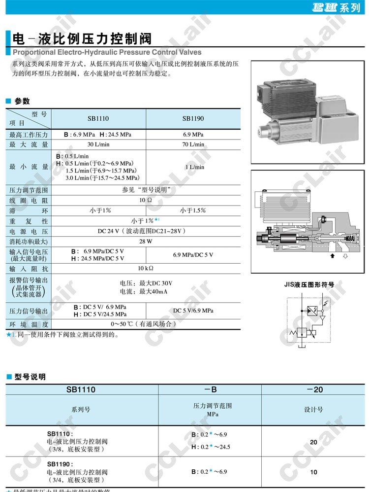 SB1110-B-20,SB1110-H-20,SB1190-B-10,電-液比例壓力控制閥,YUCIYUKEN榆次油研 |