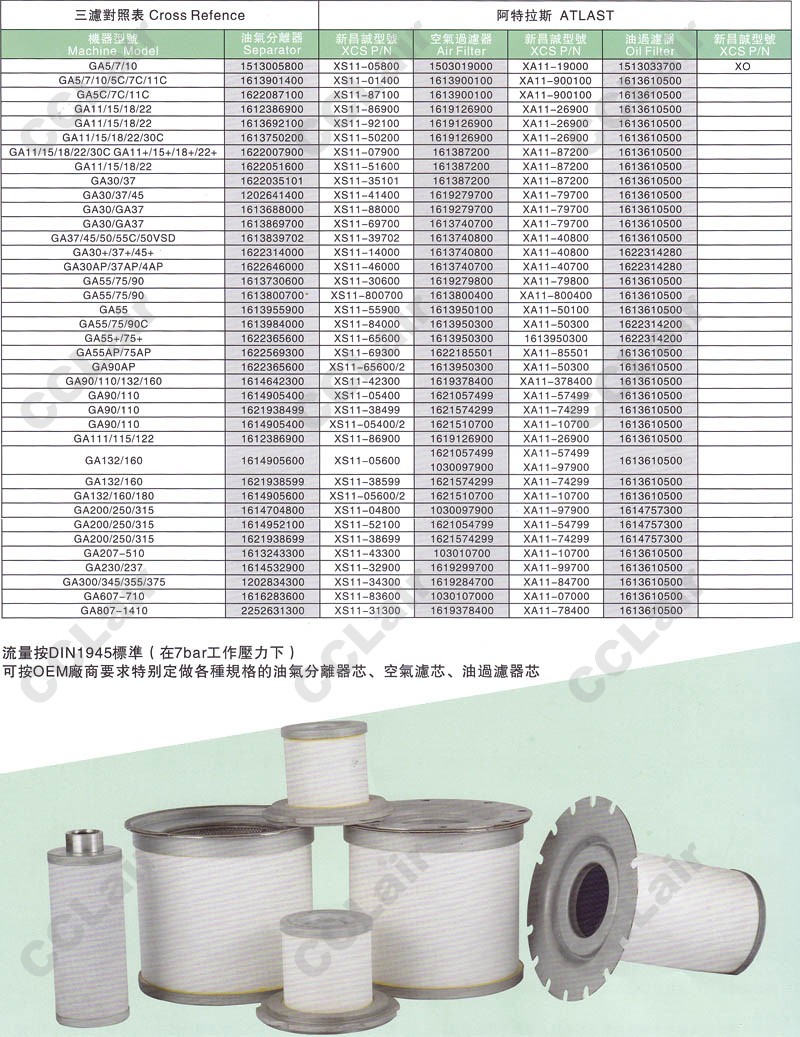 GA207-510,GA230/237,GA300/345/355/375,GA607-710,GA807-1410,