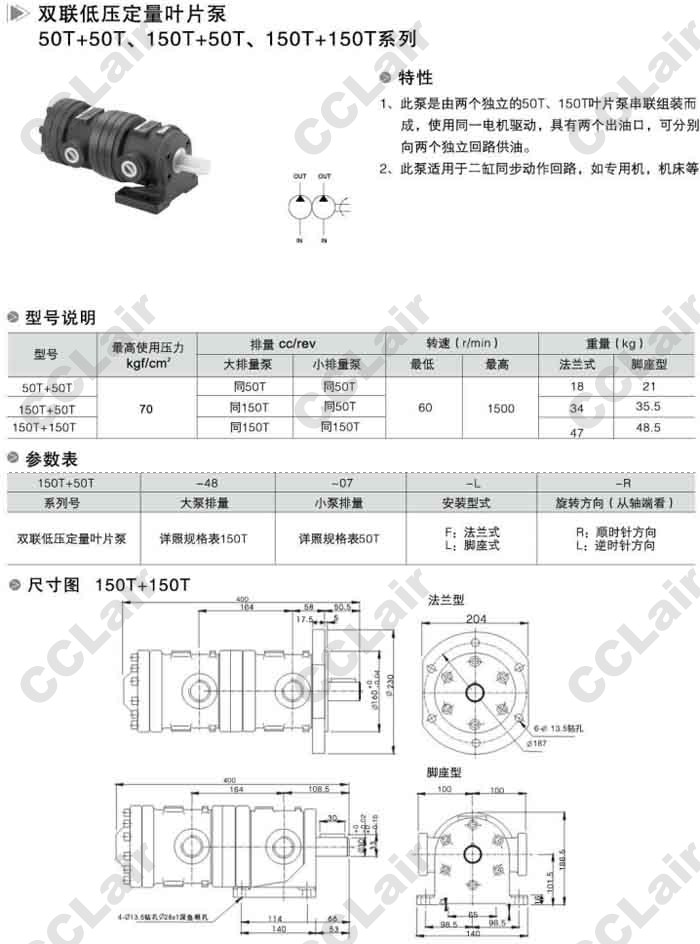 50T+50T,150T+50T,150T+150T,雙聯(lián)低壓定量葉片泵,無錫昌林
