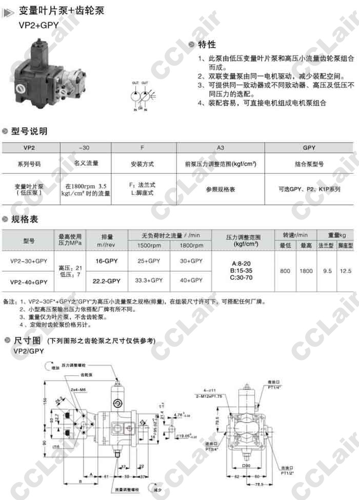 VP2-30+GPY,VP2-40+GPY,變量葉片泵+齒輪泵,無錫昌林