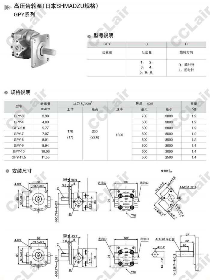 GPY-3-R,GPY-4-R,GPY-5.8-R,GPY-7-R,GPY-8-R,GPY-9-R,GPY-10-R,GPY-11.5-R,GPY-3-L,GPY-4-L,高壓齒輪泵