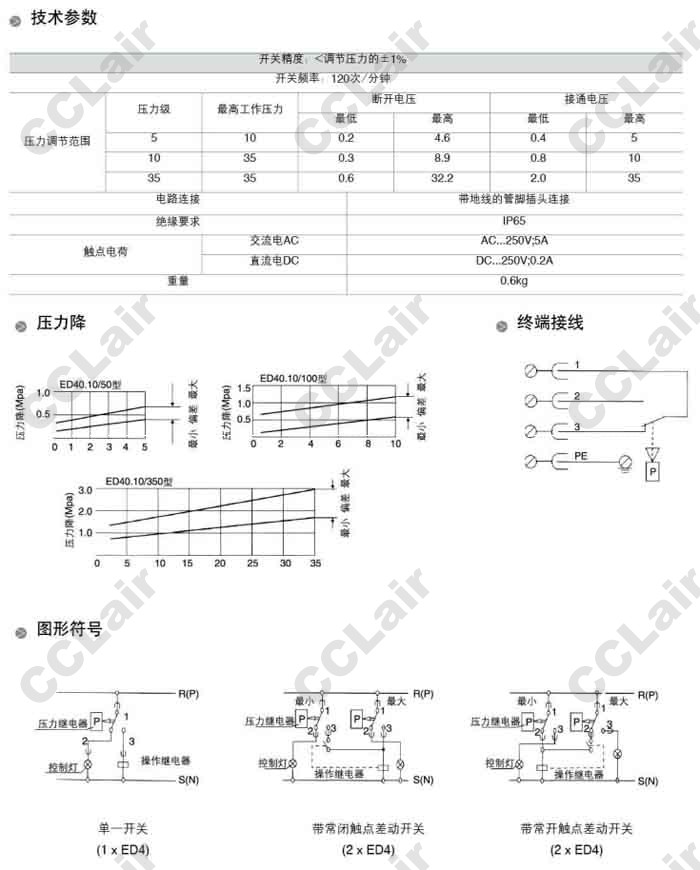 型號(hào): ED40-A-10,ED40-P-10,ED40-H-10,ED40-A-10-50-L24V,ED40-A-10-350-L24V,液電壓力繼電器