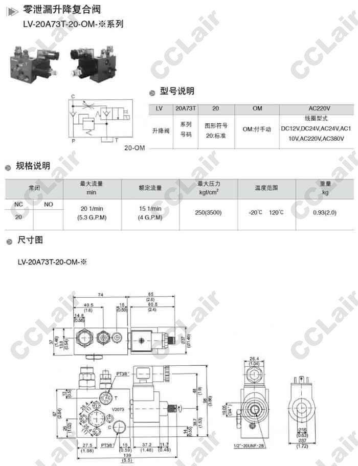 LV-20A73T-20,LV-20A73T-20-OM-DC12V,LV-20A73T-20-OM-DC24V,LV-20A73T-20-OM-AC24V,零泄漏升降復(fù)合閥