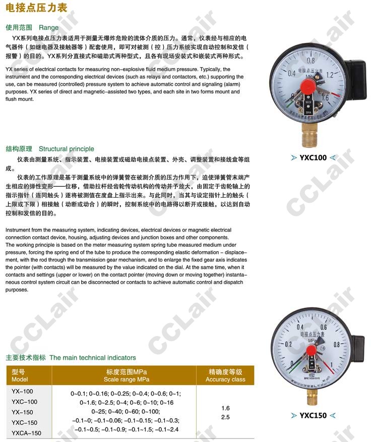 YX-100,YXC-100,YX-150,YXC-150,YXCA-150,電接點(diǎn)壓力表