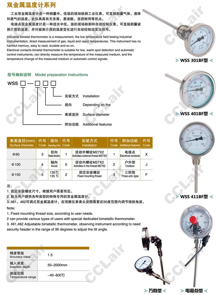WSS-301BF,WSS-401BF,WSS-411BF,雙金屬溫度計(jì),無錫昌林