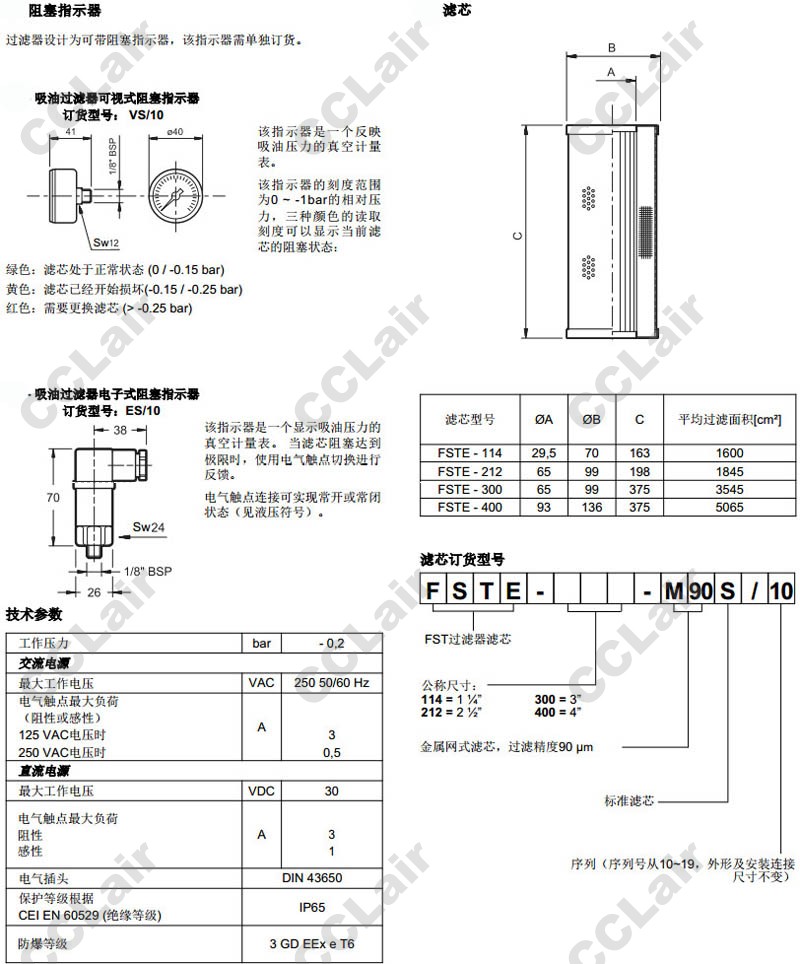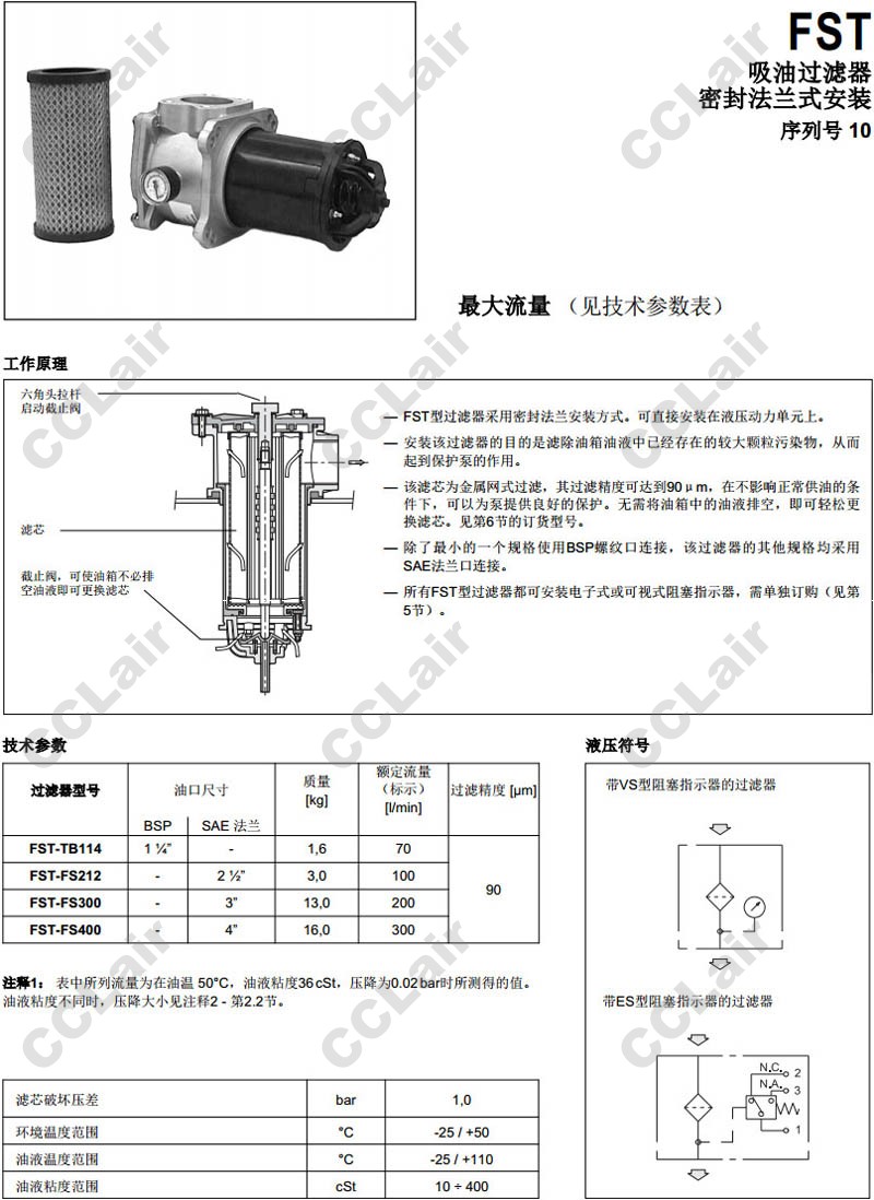 FST-FS114-M90S/10N-0,FST-TB212-M90S/10N-0,FST-FS300-M90S/10V-0,FST-TB400-M90S/10V-0,FST-FS212-M90S/10N-0,吸油過濾器
