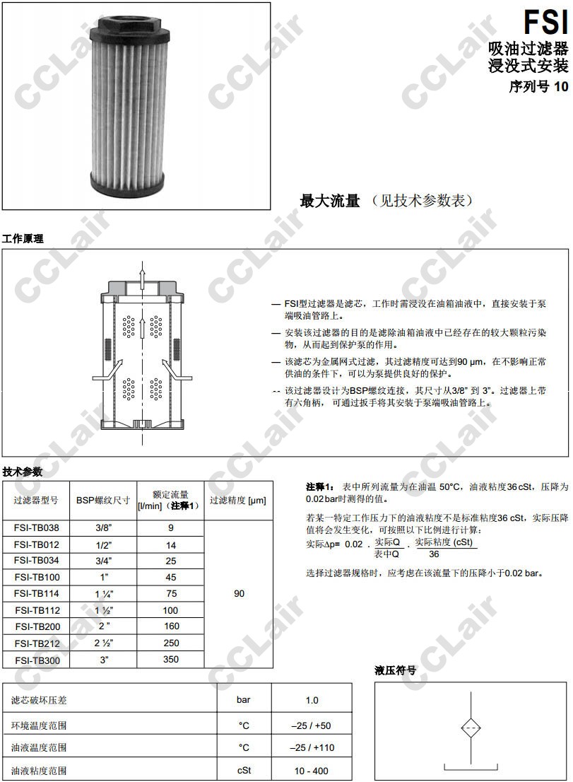 FSI-TB038-M90S/10-0,FSI-TB012-M90S/10-0,FSI-TB034-M90S/10-0,FSI-TB100-M90S/10-0,FSI-TB114-M90S/10-0,吸油過濾器