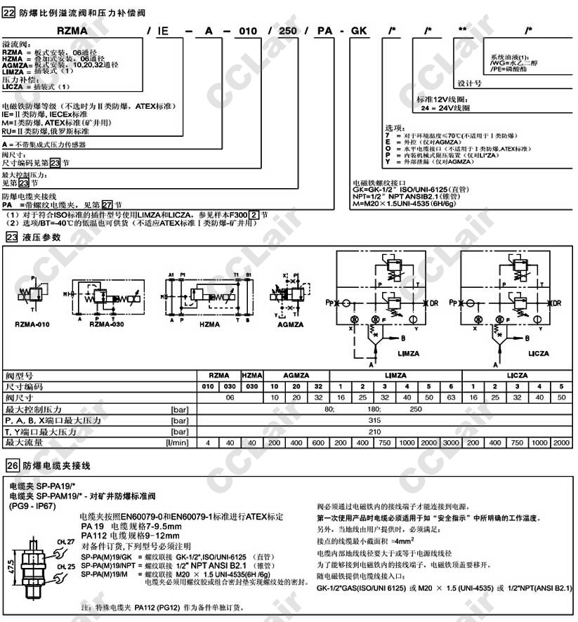 AGMZA/IE-A,AGMZA-A,AGMZA-A-32/250/PA-M/Y/24,AGMZA/IE-A-32/250/PA-M/O/24,阿托斯ATOS隔爆比例溢流閥