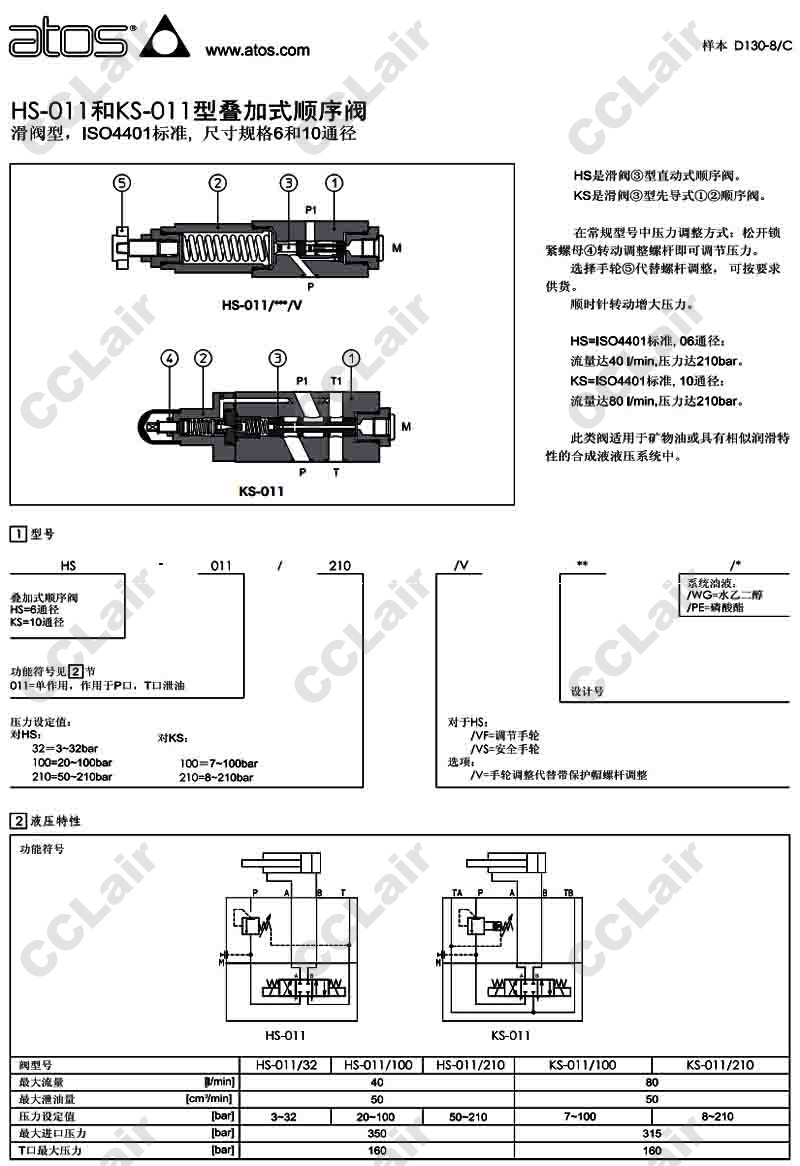 KS-011/100/V,KS-011/210/V,阿托斯ATOS疊加式順序閥