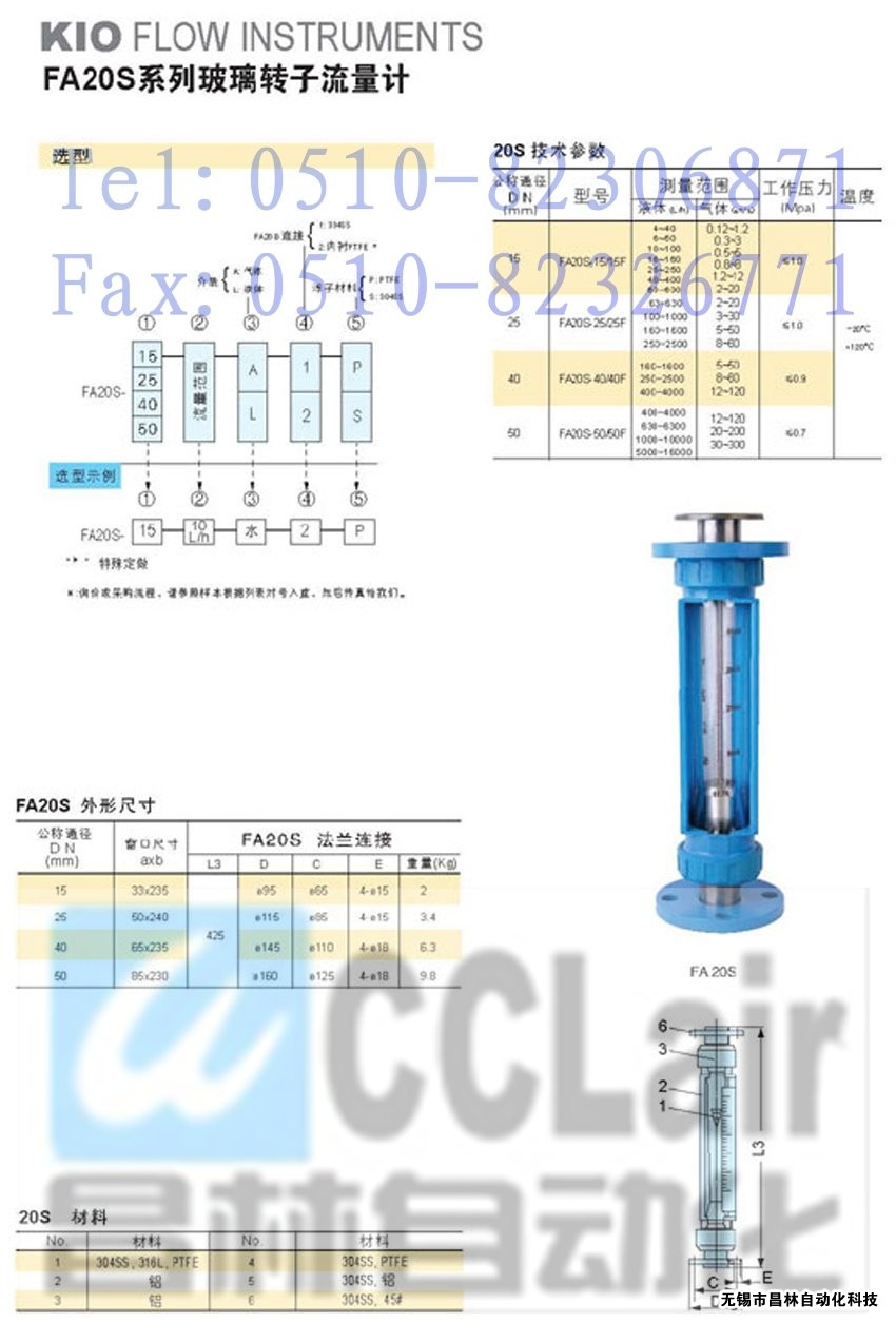 FA20S-40/40F,FA20S-50/50F玻璃轉(zhuǎn)子流量計(jì)