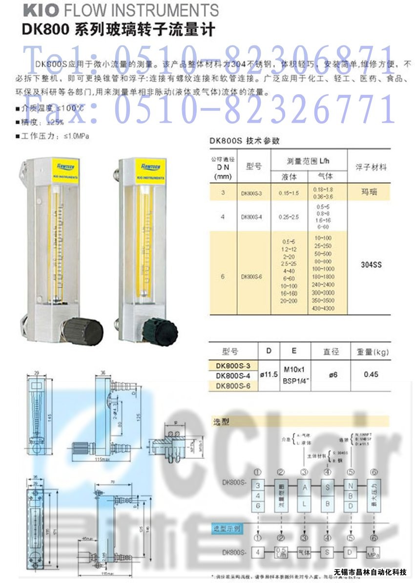 DK800S-3,DK800S-4,DK800S-6玻璃轉(zhuǎn)子流量計(jì)