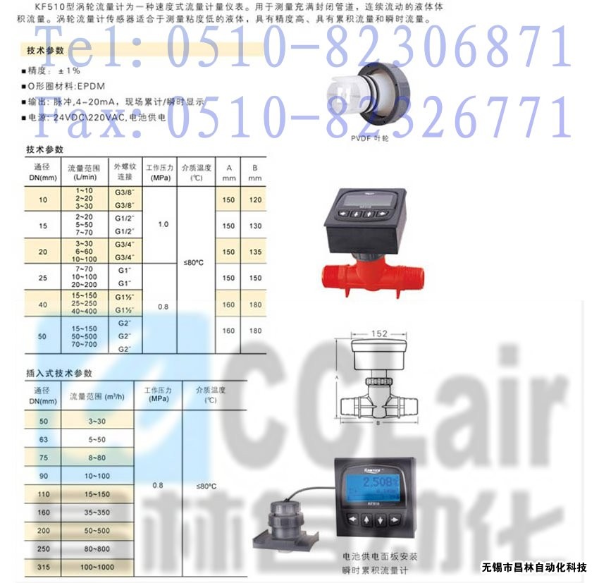 KF510-10,KF510-15,KF510-20渦輪流量計(jì)